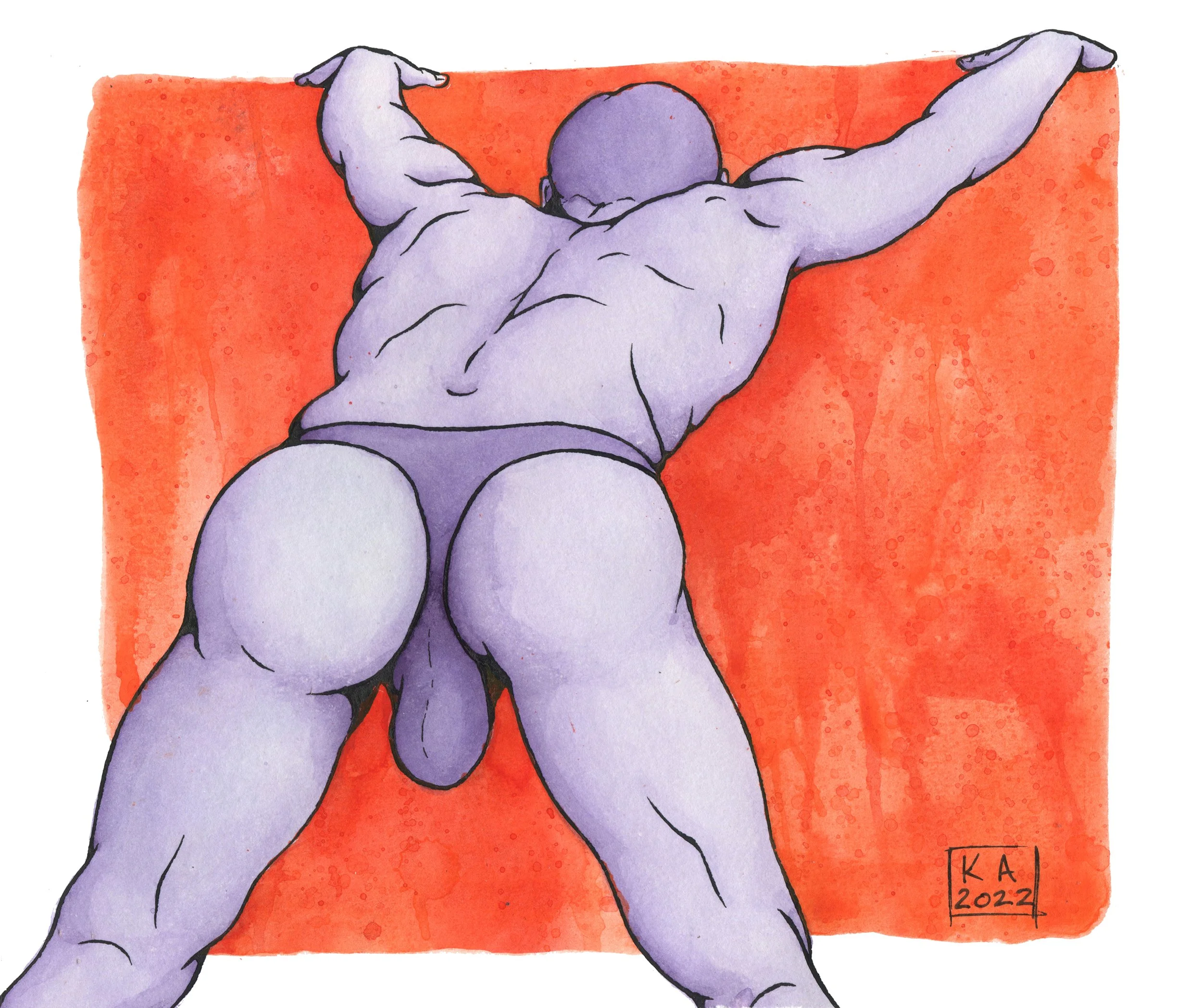 Barrit served a series of butt-centric poses for a live drawing session in the middle of the Homocats Studio gallery show, “Butts On the Run.” Here is one of the finished pieces from that!